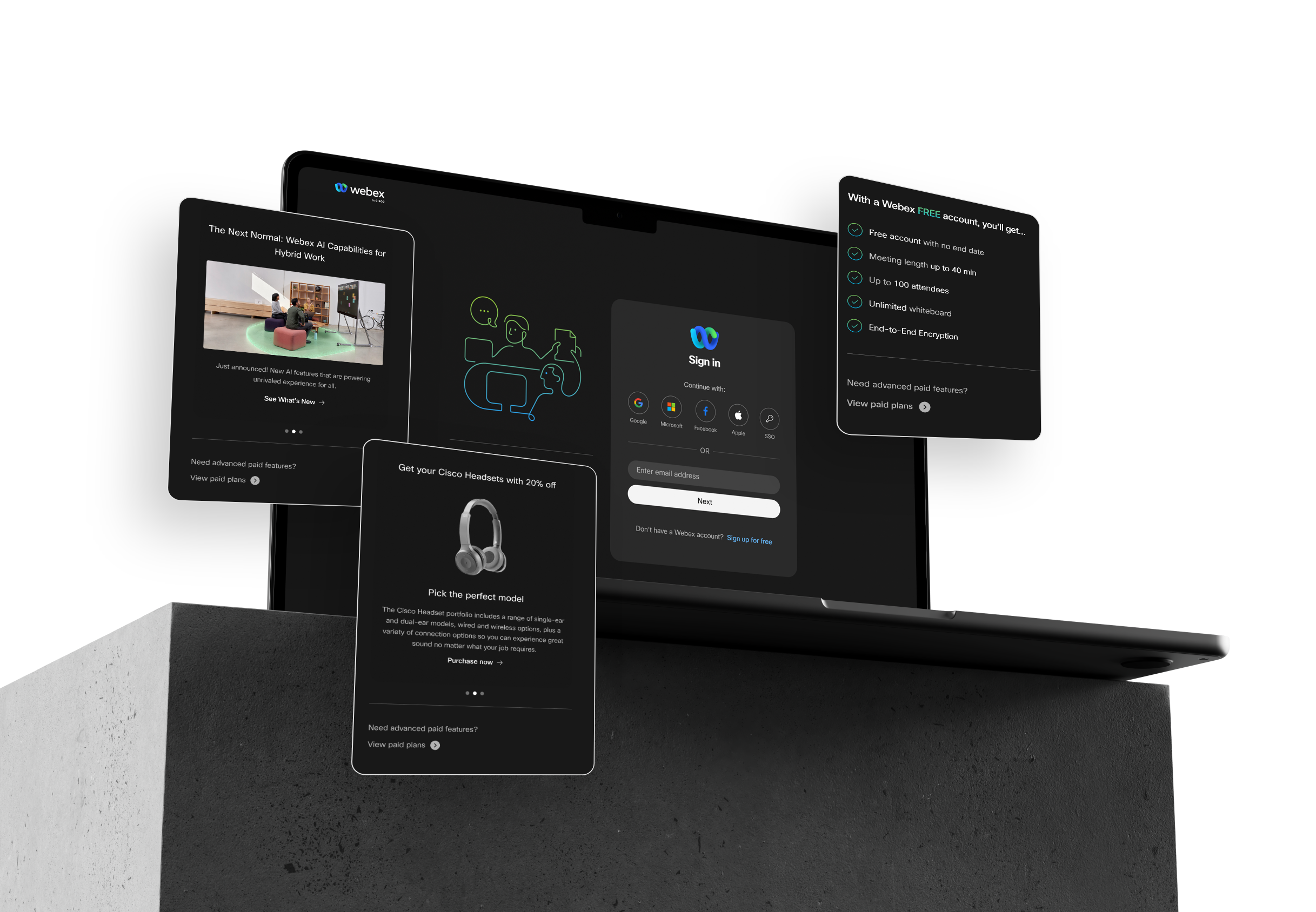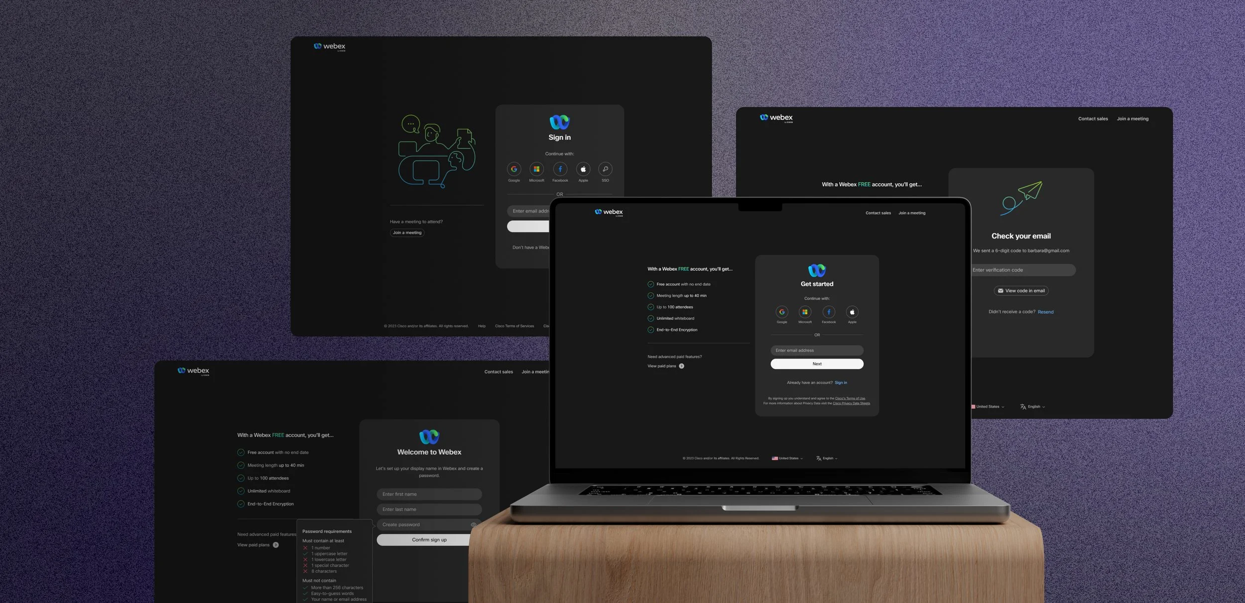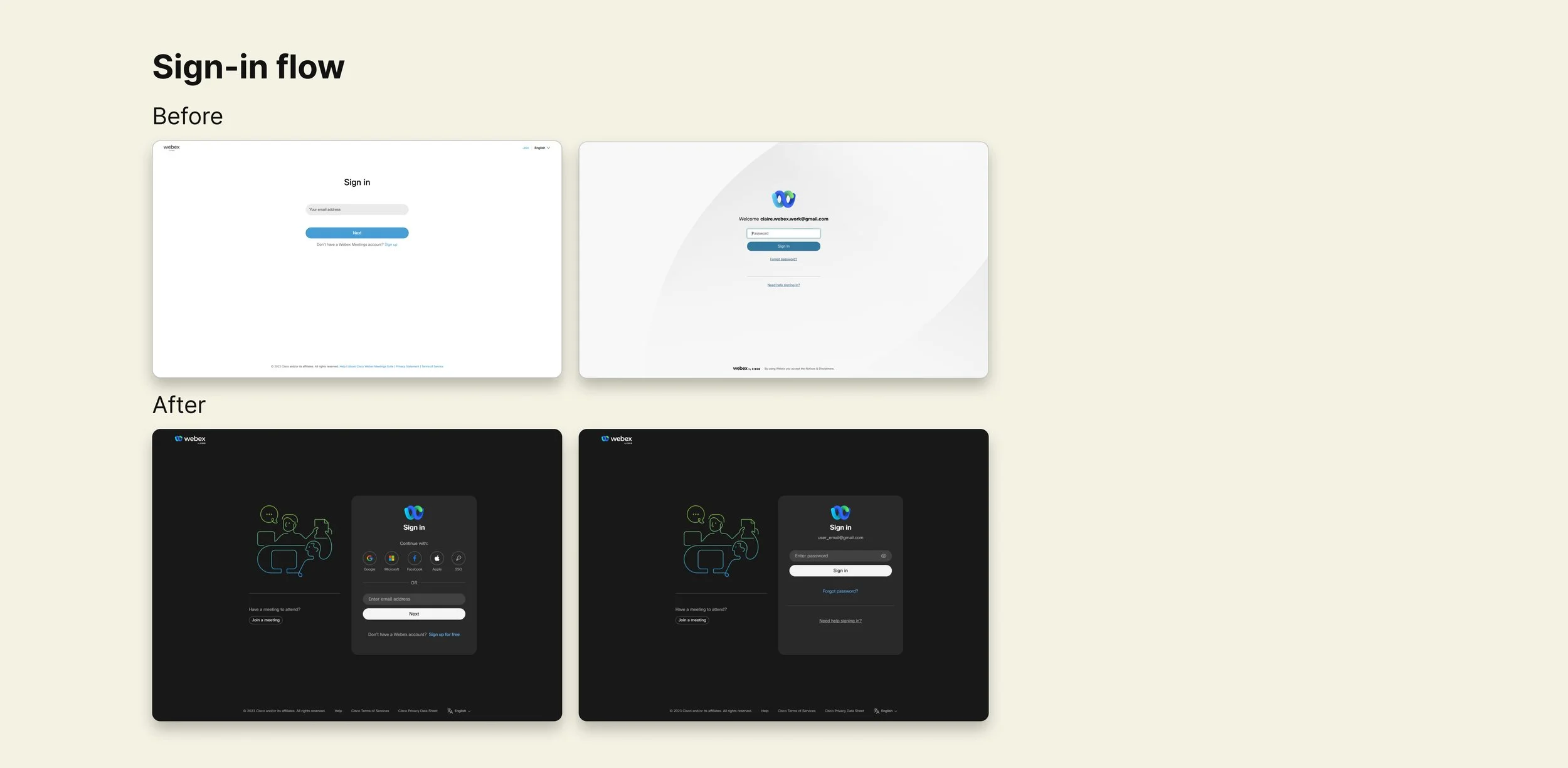 “I redesigned the sign-in/up flow for individual online users to easily onboard to Webex.”