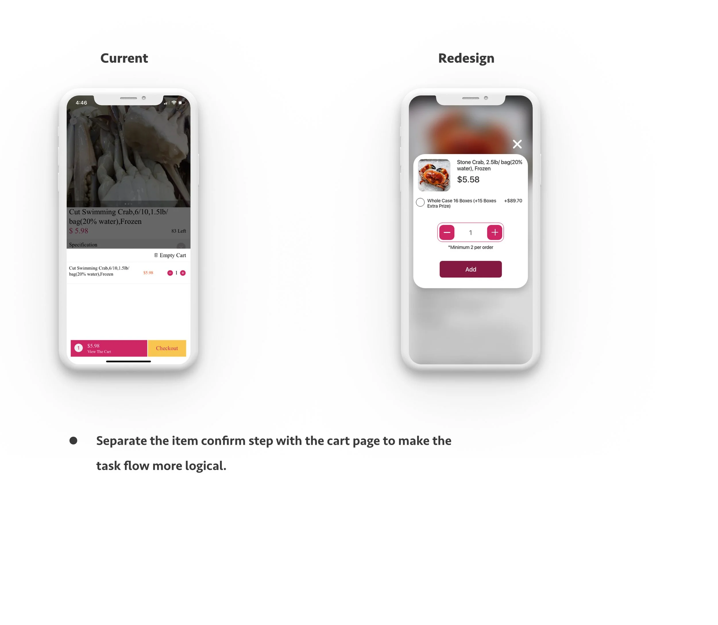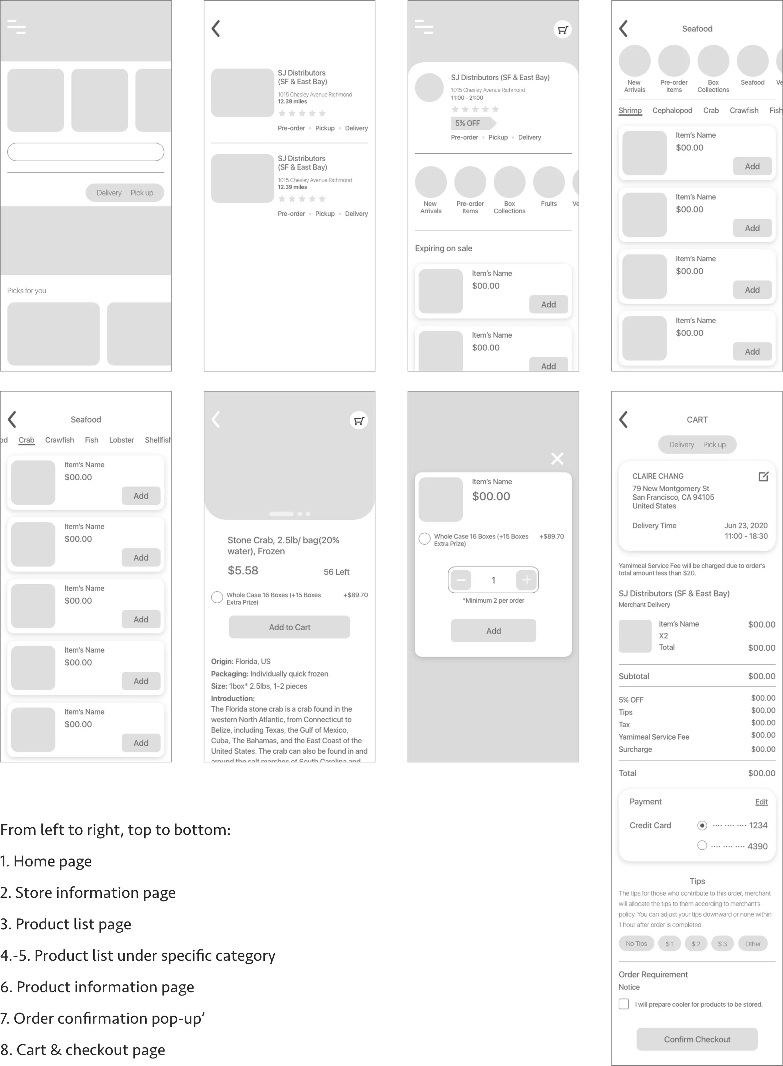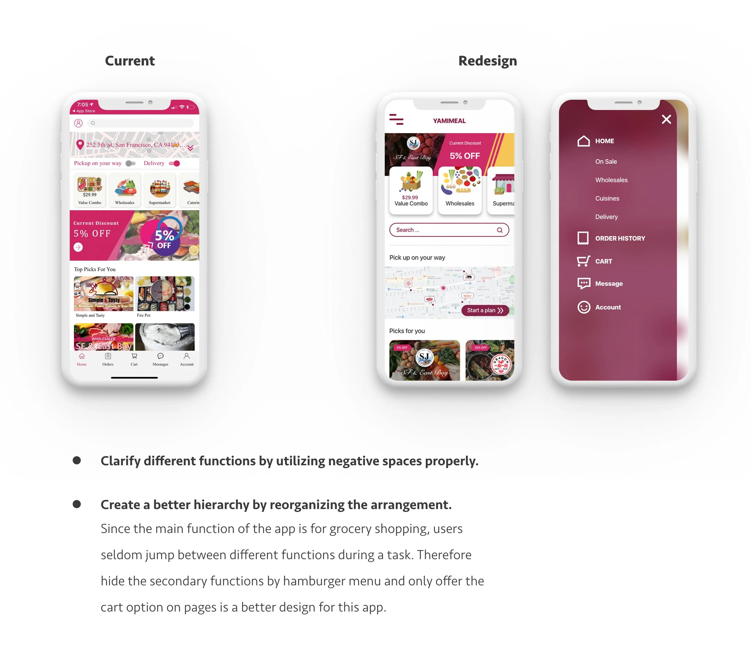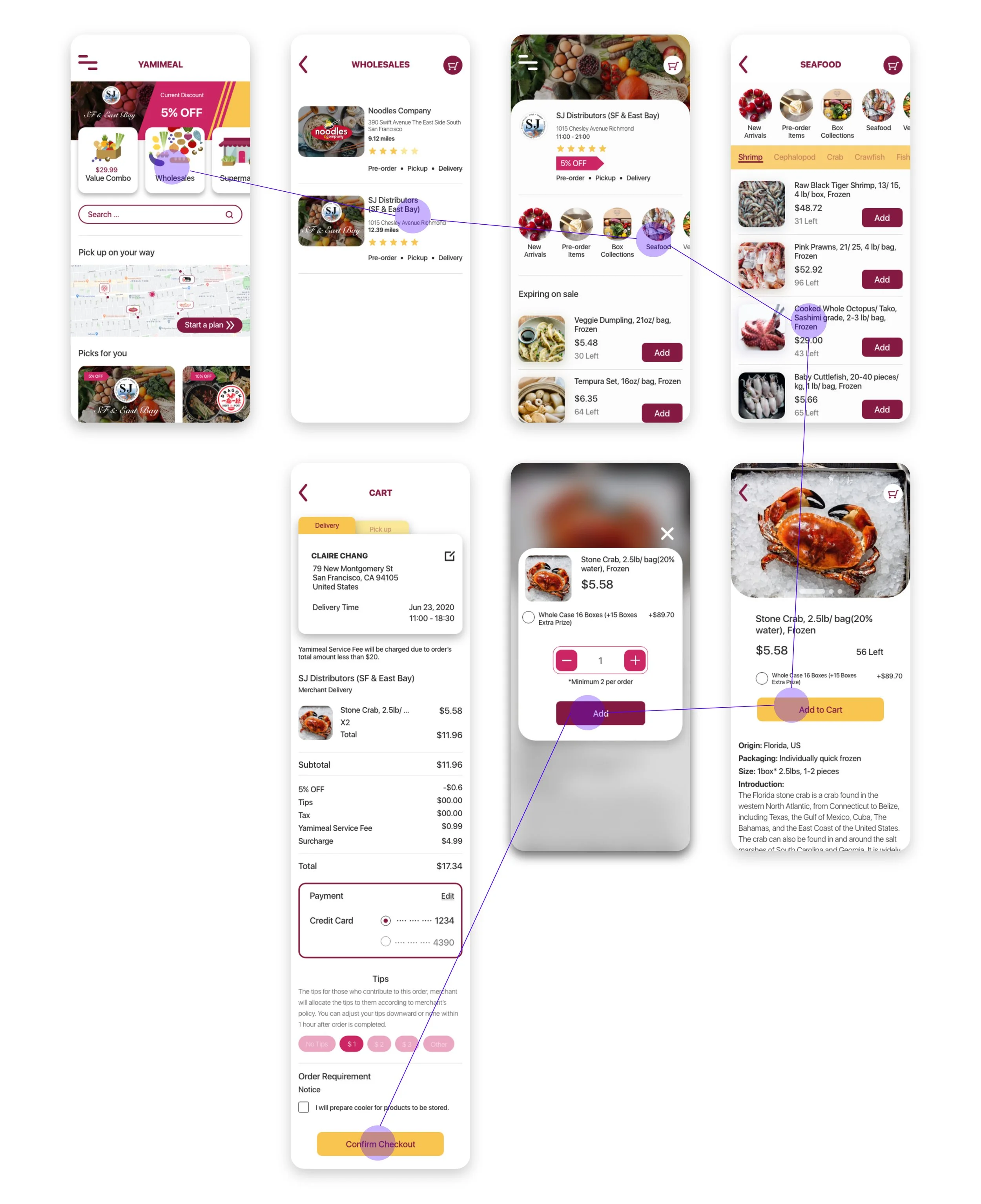 In 2020, Yamimeal emerged as a nascent mobile app for grocery shopping, offering users the convenience of purchasing ingredients or dishes. During the COVID pandemic, the app helps me resolve outdoor grocery shopping challenges. Impressed by its potential and the need for an improved user experience, I embarked on a personal UX project to propose design enhancements to the company. The outcome was immensely positive, and as a result, I was hired to become their first UX designer, further contributing to the app's growth and success.